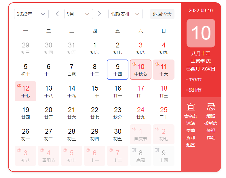 根據(jù)《國務(wù)院辦公廳關(guān)于2022年部分節(jié)假日安排的通知》精神,2022年中秋節(jié)放假安排如下: